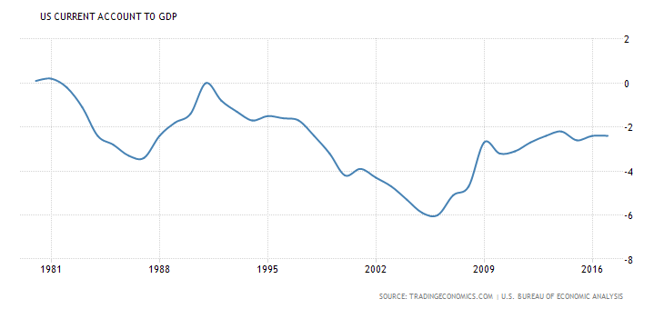 首先,贸易赤字代表负债,如果在金本位下就需要动用黄金偿还,美国2017年贸易