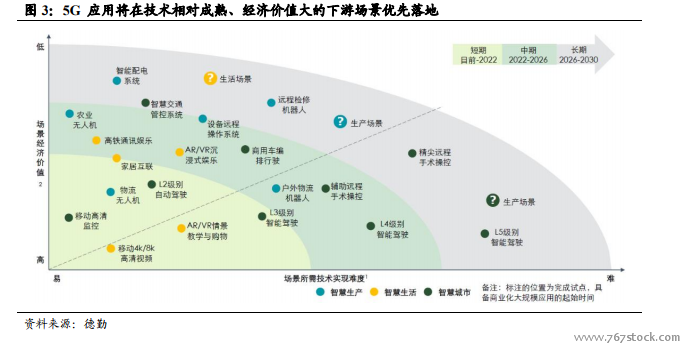 网络部署循序渐进,成熟下游产业有望率先落地。由于 5G 网络部署投资规模较高,尚未形成标准的网络架构,5G 技术和产业链的发展成熟需要一个长期进程。具体到国内的规划,中国移动已在北京、上海等在主要城市建设 5G 试点网络,并计划于 2020 年全面商用。中国电信计划2019 年进行 5G 预商用,2020 年正式商用。中国联通表示将明年进行 5G预商用部署。由于部分增强型移动宽带的应用场景产业已相对成熟而部署难度较低,同时具有较高的经济效益,在 5G 部署初期将主要满足eMBB 的场景需求。短期之内,5G 将主要应用在视频领域。目前我国运营商+华为和中央电视台已经签署合作建设 5G 新媒体平台框架协议并实现多次 5G+4K 直播,给广大用户留下深刻印象;用户层面的 4K/8K视频和 VRAR 所带来的娱乐性需求业务,落实难度相对较低,也会进一步得到推进。随着标准和技术的不断升级完善,基站和终端设备的建设,5G 核心网络将会支持更多的 mMTC 和 uRLLC 的应用场景,5G 所带来的经济社会效益将进一步凸显。