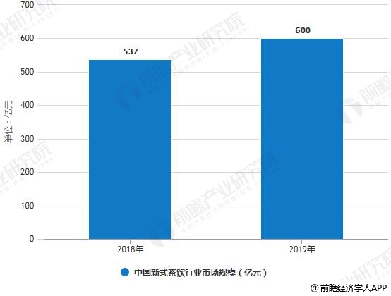 近两年,新式茶饮将茶叶消费的热点带入新高潮。随着80后、90后在饮料行业的消费力逐年增大。传统茶行业也敏锐地嗅到商机。不少茶企开始把开发空间瞄向了极具开发潜力的年轻消费群。通过改变饮茶场景,加入多元化、年轻化的包装,网络化语言的输出等方式,吸引年轻消费客群的注意和购买。截止至2018中国新式茶饮行业市场规模达到约537亿元,预测2019年中国新式茶饮行业市场规模将达600亿元左右。
