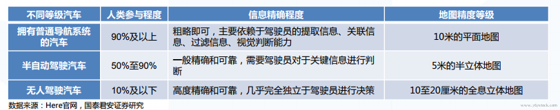 智能网联汽车:由车联网到无人驾驶,高精度地图是关键技术之一 。高精度地图(High-Definition maps)是智能汽车的“眼睛”,可以使汽车预先感知路面复杂信息,如坡度、曲率、航向等,精度可达20厘米。高精度地图对于无人驾驶的巨大价值受到国内外高科技企业和汽车厂商的广泛关注。高精度地图是实现自动驾驶的关键技术。高精度地图提升ADAS功能,结合传感器信息提供最优的路径规划:1)高精度地图的绝对坐标精度更高,普通地图的定位精度一般在5-10米左右,而ADAS所需的精度大约在50厘米级别,无人驾驶则需要达到10厘米以内。2)高精度地图含有更加丰富的道路交通信息元素,不仅能够像普通导航地图一样描绘出道路,还能够体现曲率、坡度、车道线、交通标志等准确的道路信息。