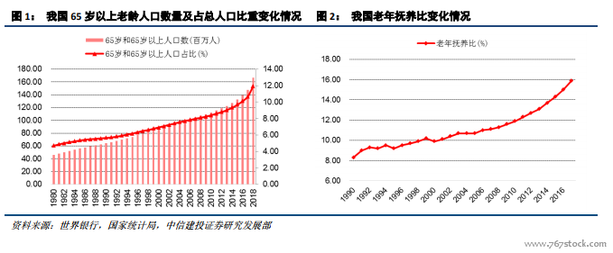 我国全面步入老龄化,催生巨大养老市场。我国已全面步入老龄化,一般认为当一国 65 岁以上人口占比超过 7%,即进入“老龄化”社会;当 65 岁以上人口占比超过 14%,即进入深度老龄化社会。根据国家统计局数据,2002 年我国 65 岁以上人口达 9420 万人,占总人口 7.3%,正式进入老龄化社会。2018 年我国 65 岁以上人口为 16658 万,占比高达 11.9%。国家统计局数据显示,我国老年抚养比(非劳动年龄人口中老龄人口与劳动年龄人口之比)自 1990 年以来持续提升,2018 年末老年抚养比为 17%。社会养老压力大增,我国已全面进入老龄化社会,养老产业面临巨大的发展前景。