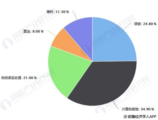 2017年我国人工智能细分市场规模占比统计情况