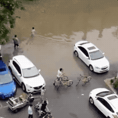 [color=rgba(0, 0, 0, 0.87)]一名骑自行车的男子听到提示后,心有犹豫,想直接进入深水区。小男孩见状,立即挽起裤管蹚入水中,以身测水。
