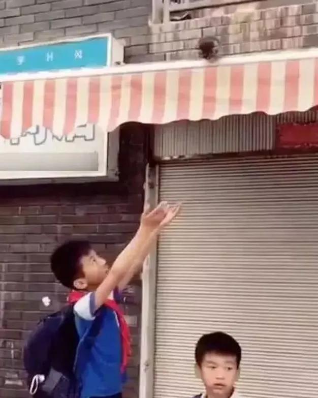 [color=rgba(0, 0, 0, 0.87)]一只小猫咪被困屋檐,两名放学路过的小男孩看到后,先是踮起脚尖,伸出双手想接住小猫。