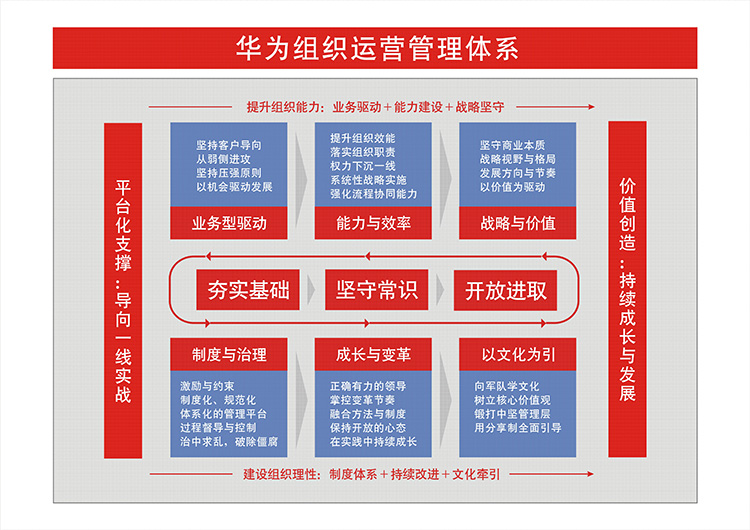 华为经过不懈的尝试、探索和总结,逐渐形成一套组织运营方法论,其有效性已经通过华为的巨大成功得以验证。比如,如何从一线作战倒推组织运营体系建设?如何发挥企业文化的巨大牵引作用?如何通过建立组织理性来提高人的理性?如何从不确定性管理走向确定性管理?等等。