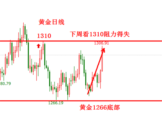从一般规律来看,这种消息面刺激的暴涨持续性不会很强。因此下周我不是看好黄金会继续上涨。首先,从日线来看,面临日线前高1310,存在较强的阻力。其次,大涨之后,技术面出现背离,有回调修正的需求。所以,下周的思路首先是看大涨之后的修正,修正之后再看拉升。下周金价回调第一支撑位在1295,在金价首次冲击1300滞涨的过程中,黄金多次回调到1295都反弹上去了,最后一次回调到1295,在美指下跌助攻下,最终上涨突破了1300,因此1295构成第一支撑。而第二个重要支撑是1288,也就是前面阻力被突破之后的支撑转化。后期金价如果回调不破1288的话,以看涨对待,如果回调跌破1288,盘中则根据走势及时转变思路。下周黄金整体走势预测是先看黄金冲高回落,1310阻力下跌,回调修正之后再看支撑反弹!操作上先空后多,具体进场盘中根据走势定!