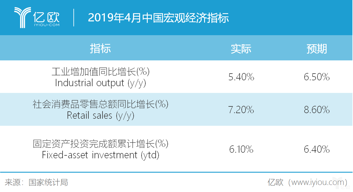 2019年4月的中国经济数据折射出,中国的工业(industrial output),社会消费品零售总额(retail sales)以及固定资产投资(investment)的增长速度都远低于经济学家预期。国内信贷及消费的萎缩,加之全球经济放缓,显示出中国的经济增长引擎渐渐失去动力。彭博社指出,面对如此低迷的数据,市场对于中国政府增加经济刺激的预期加强,这将进一步促进亚洲股市上涨。