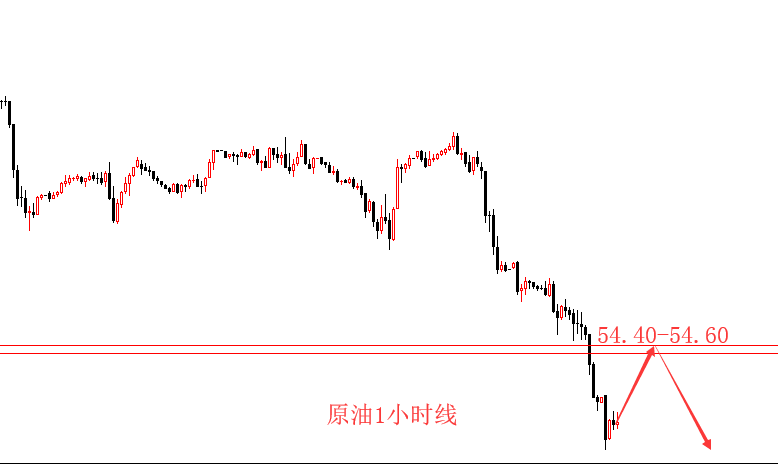 日内操作建议:反弹上方54.40-54.60区域空单进场,止损0.4美金,目标53-52,建议仅供参考不作为下单依据!