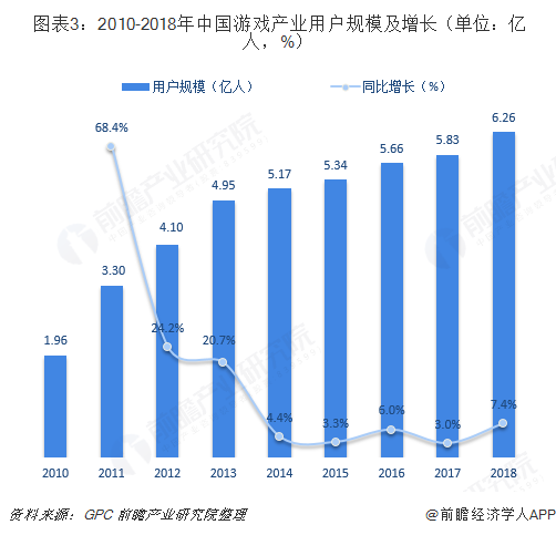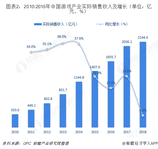 近年来,我国游戏行业发展迅猛。到2018年,中国游戏市场实际销售收入已超过2100亿元,达2144.4亿元,同比增长5.3%,占同期全球市场比例约为23.6%;同期用户规模则超过6亿人,达6.26亿人,同比增长7.4%。