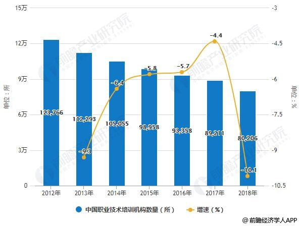 2012-2018年中国职业技术培训机构数量统计及增长情况