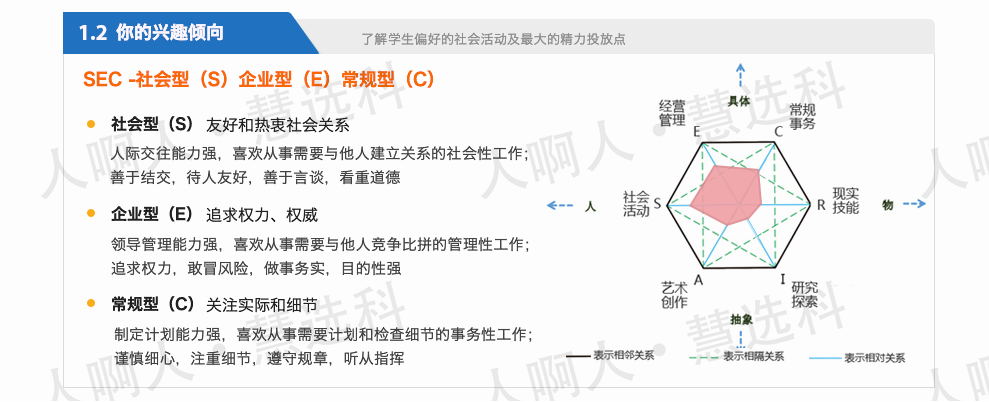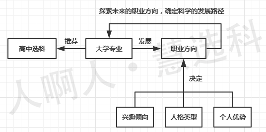 [size=10.5000pt]从学生的兴趣倾向、人格类型和个人优势三个方面来综合判断,决定适合该学生的职业方向,根据职业方向,选择适合他的大学专业,根据大学专业的科目要求,最后选择该学生应该要选择的科目。