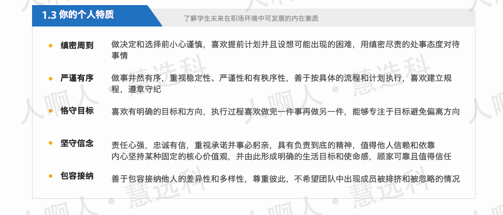 [size=10.5000pt]值得注意的是,要借助测评工具帮助自己提高自我认知,要尽可能选择科学、专业和标准的测评工具(如:慧选科)。