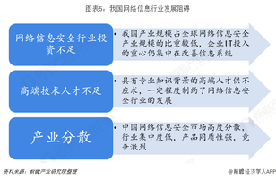 网络信息安全行业投资不足:我国网络信息安全产业规模占全球网络信息安全产业规模的比重较低,整体发展水平相对较弱,缺少具有国际市场竞争力和影响力的龙头企业。此外,我国企业IT投入的重心仍集中在改善信息系统,对网络信息安全的重视程度仍有待进一步提高,我国网络信息安全投入占IT总投入的比重远低于日本、美国等发达国家。