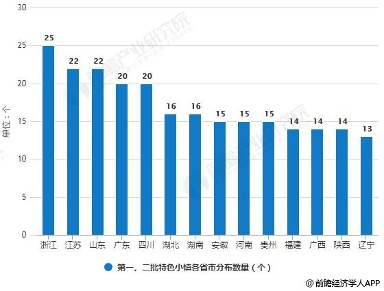 第一、二批特色小镇各省市分布数量统计情况