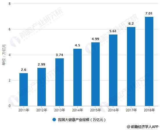 2011-2018年我国大健康产业规模统计情况及预测