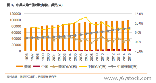 工业互联网有望助力制造业生产率提升。1988 至 1990 年,美国制造业劳动生产率增速乏力,因为工业革命的创新已经达到一个更为成熟的阶段,边际效益消失。1990 年之后美国的制造业生产率复苏,广泛的共识是此次生产力加速源自互联网革命及其背后的计算技术所带来的信息与通信技术。中国制造业错过了 90 年代互联网革命,增速呈明显的整体放缓趋势,制造业生产率提升迫在眉睫。参考互联网助力美国制造业复苏,数据化、信息化是打破生产率瓶颈的重中之重。
