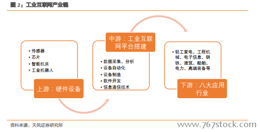 工业互联网涉及多个交叉行业,千亿级市场规模。工业互联网融合了传感器、联网装置连接、自动化设备、数据存储、大数据分析、人工智能、高效运算、4G/5G/物联网等新兴技术,覆盖计算机、通信、机械装备等多个行业,投资机遇广泛。根据 2019 工业互联网峰会上工业和信息化部副部长陈肇雄的观点,2019 年我国工业互联网产业规模将达到 4800亿元。