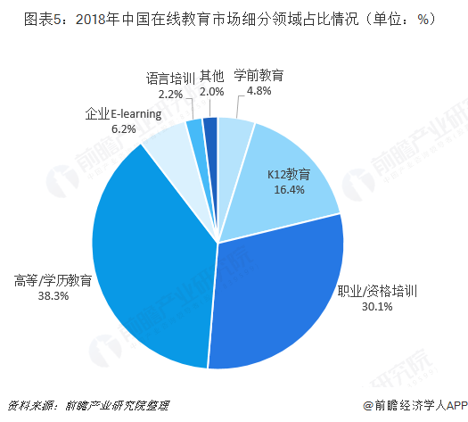 在线教育覆盖七大领域,高等/学历教育占比最大