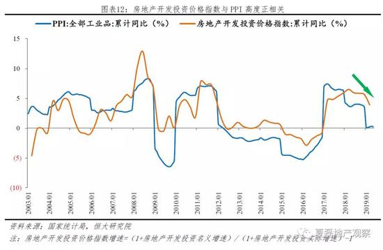 房地产投资的价格因素与PPI高度正相关。2019年1-3月,房地产投资价格指数增速3.9%,较2018年全年降低1.7个百分点,主要受PPI见顶后持续回落影响,同期,PPI累计同比增长0.2%,降低3.3个百分点。