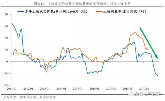 从成本结构来看,施工和单位建安成本的支撑因素都开始弱化、建安支出拐点临近,土地支出增速将继续回落。对于建安支出,一方面,施工增速拐点临近,主要由于拿地见顶回落的滞后传导效应逐渐显现;另一方面,单位建安成本增速大概率也即将见顶,主要由于销售均价增速在2018年末见顶、2019年初以来回落;对于土地购置费,2018年土地成交款累计同比在8月达到23.7%的短期高点后持续回落,2019年以来大幅负增长、5月-35.6%,对土地支出的滞后传导将持续产生下拉作用,后续土地支出甚至可能出现负增长。