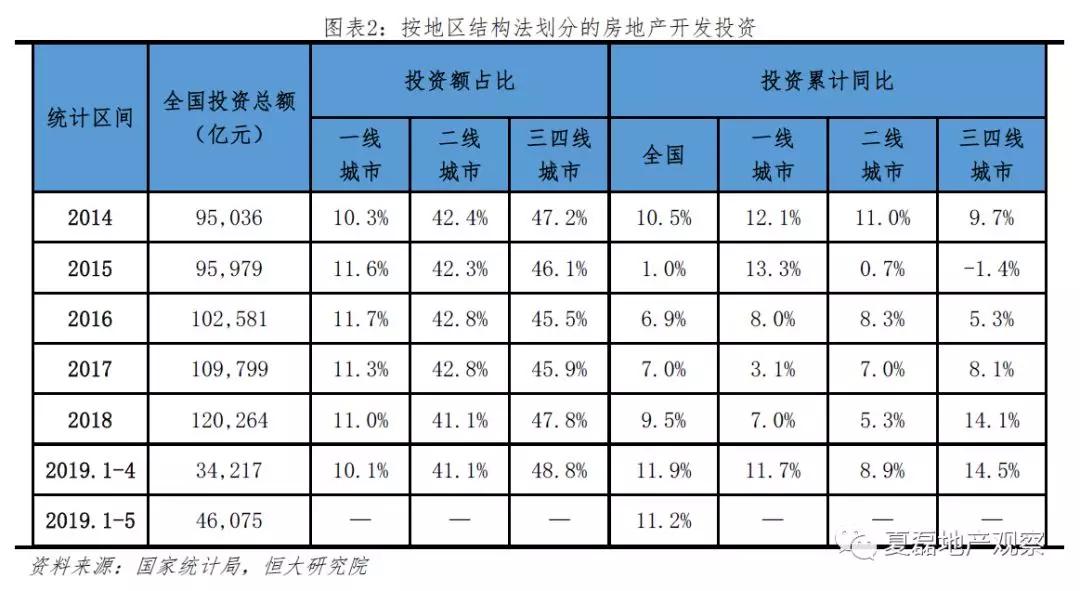 年初,市场普遍对今年的房地产开发投资较为悲观,我们基于对分线城市、分项数据的调研和预测,对全年投资的判断处于较乐观的水平。年初至今,房地产投资强劲远超市场预期,1-5月累计投资46075亿元,同比增长11.2%,增速比2018年全年提高1.7个百分点。