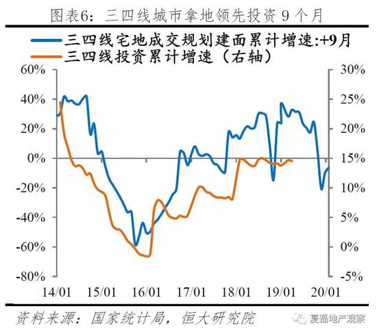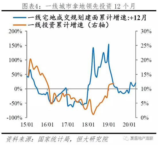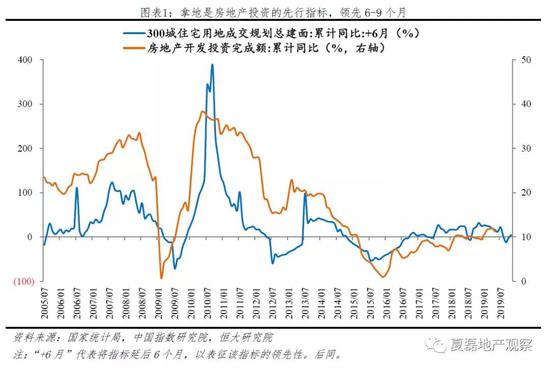 土地是房地产投资的原材料,这决定了拿地是房地产投资的领先指标。一方面,获得土地使用权的房企,在取得施工许可证之后,方可开工施工、纳入投资统计。国家统计局《房地产开发统计报表制度》规定,房地产开发“项目指房地产开发企业,按照城市建设规划要求,立项审批(备案)并取得《施工许可证》后,在依法取得土地使用权的土地上开发的楼盘或小区工程。”另一方面,统计局还规定,“土地购置费按实际发生额填报,分期付款的应分期计入。项目分期开发的,只计入于本期项目有关的土地购置费。”因此投资中的土地支出也滞后于拿地。