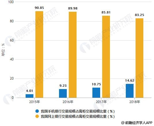 2015-2018年我国手机、网上银行交易规模占离柜交易规模比重统计情况