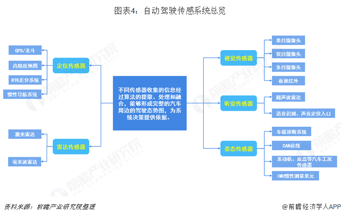 自动驾驶的技术主要分为感知、决策和执行三个部分。其中感知层主要通过结合使用多种传感器,以感知探测汽车周围的车、人、交通状况、所处的位置等信息。决策层是在基于感知层搜集信息的基础上,通过算法对于信息进行综合处理,进行判断并将指令发送给控制层,由控制层通过对车辆进行转向控制、驱动控制、制动控制和安全控制。