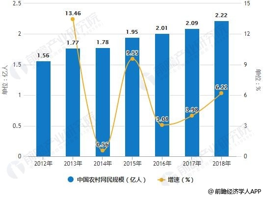 2012-2018年中国农村网民规模统计及增长情况
