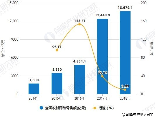 2014-2018年全国农村网络零售额统计及增长情况