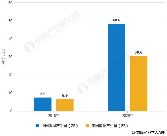 当前,我国正在加速从数据大国向着数据强国迈进。国际数据公司和数据存储公司希捷的一份报告显示,到2025年,随着中国物联网等新技术的持续推进,其产生的数据将超过美国。我国产生的数据量将从2018年的约7.6ZB增至2025年的48.6ZB,数据交易迎来战略机遇期。1zettabyte大约是1万亿gigabyte,这是当今常用的测量方法。与此同时,美国2018年的数据约为6.9ZB。到2025年,这个数字预计将达到30.6ZB。