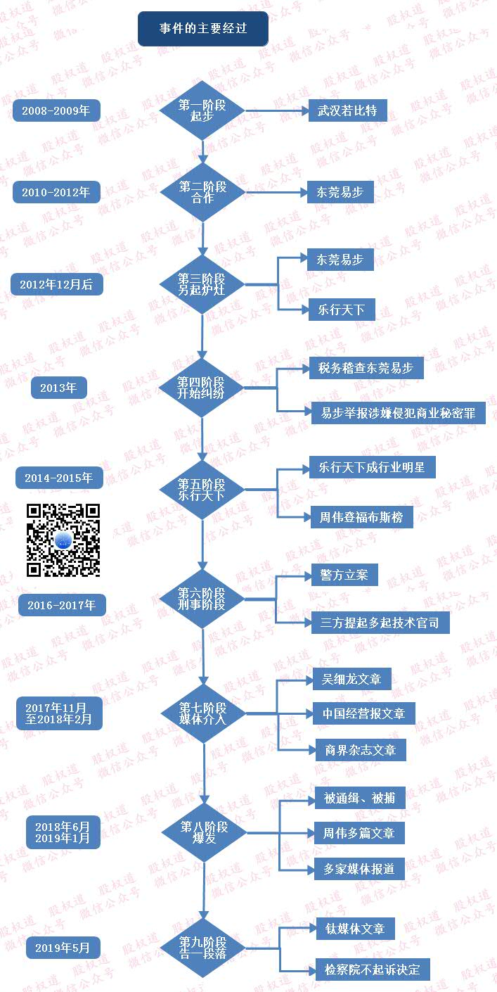 此事件涉及深圳乐行天下科技有限公司、东莞易步机器人有限公司,源于吴细龙与周伟团队的纠葛,两方目前仍有多单官司还没结束。