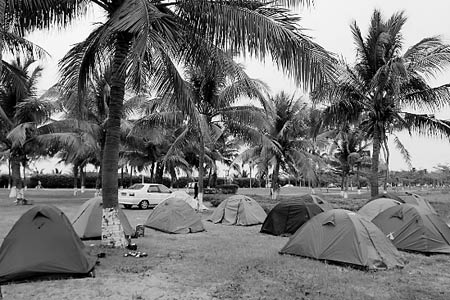 | 酒店价高无市,游客自搭帐篷海边过夜 |