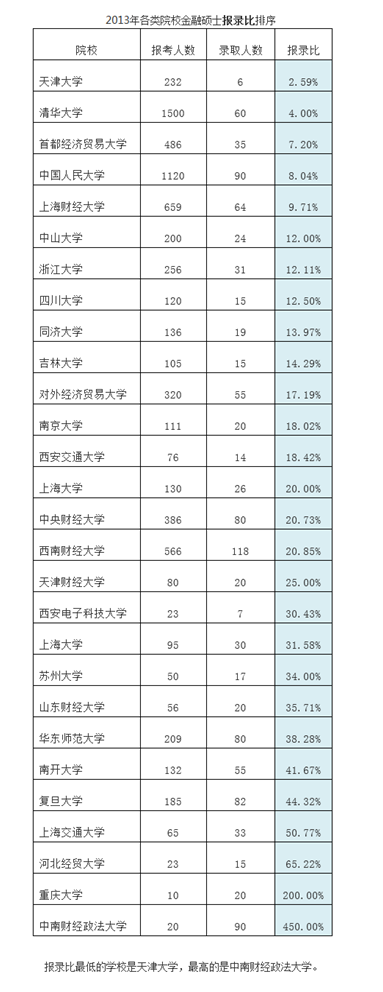 金融硕士各院校报录比