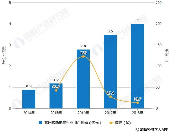 2014-2018年我国电竞行业用户规模统计及增长情况
