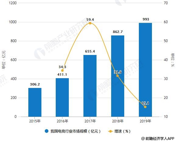 2015-2019年我国电竞行业市场规模统计及增长情况