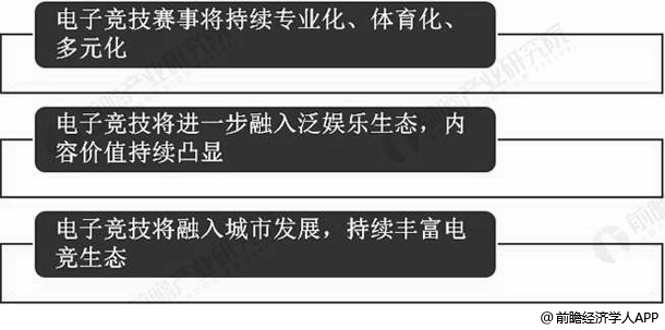 随着我国电竞行业的持续发展壮大,未来行业发展将呈现如下趋势: