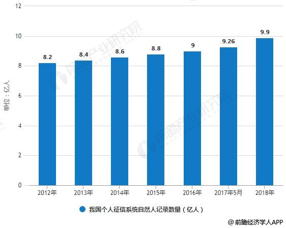 2012-2018年我国个人征信系统自然人记录数量统计情况