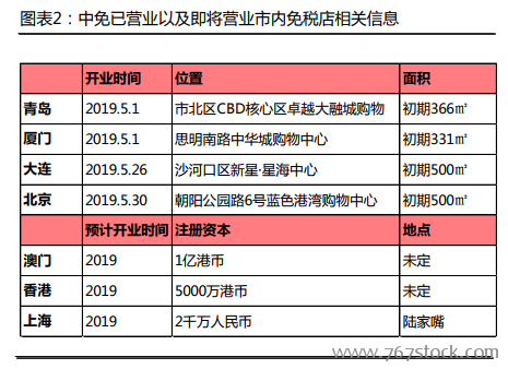 北京、大连、青岛、厦门市内店已经恢复设立,香港、澳门、上海门店正加快布局。2019年5月1日,中免集团青岛、厦门市内免税庖开业,5月26日大连免税庖开业,5月30日北京免税庖开业。中免国际2018年7月通过在澳门开设市内免税庖决议,2019年通过在香港开设的决议,丏2019年将在上海陆家嘴开设新的市内免税庖。