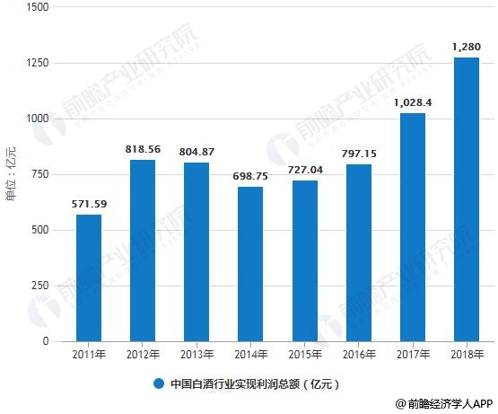 国家统计局数据显示,2018年,全国酿酒行业规模以上企业累计完成销售收入8122亿元,同比增长10%,累计实现利润总额1476亿元,同比增长23%;