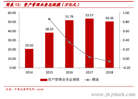 资产管理行业长期保持增长。资产管理行业是智能投研的主要客户来源,资产管理行业的机构数量、资产规模决定了智能投研行业的收入规模。根据证券业协会的统计,截止 2018 年末,资产管理业务总规模约为 50万亿元,其中包含了公募基金、私募基金、基金子公司、证券公司及期货公司。从增速来看,由于近两年宏观经济增速下滑、资本市场波动及监管趋严等因素影响,资产管理规模增速放缓,其中 2018 年整体规模有所下滑,但从 2014 年以来,规模的复合增速达到了 25%。随着资产管理行业成熟度提升,更多机构(保险机构、外资机构等)和资金(养老金、居民储蓄等)进入资本市场,资产管理行业规模长期将保持增长态势。