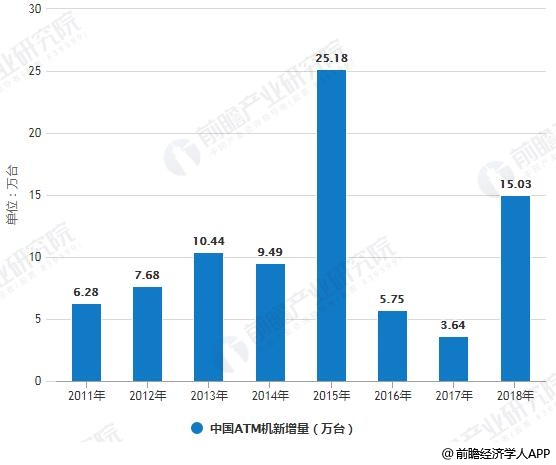 2011-2018年中国ATM机新增量统计情况