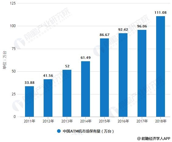 2011-2018年中国ATM机市场保有量统计情况