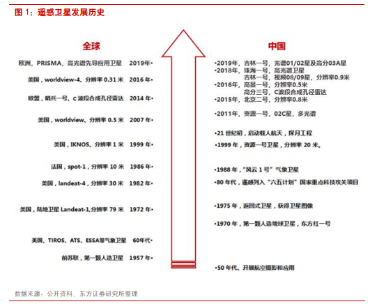 卫星遥感已发展成为地理测绘行业最主要的遥感观测方式,其优势伴随技术进步愈发凸显。地面遥感和航空遥感与卫星遥感相比,最大的优势是空间高度、机动性强,从而带来分辨率和时效性高的优点,但相应的在观测范围、重访周期劣势明显。近年来随着光电设备精度的提升、低轨小卫星组网的发展,卫星遥感在幅宽、重访周期和空间分辨率三项关键指标中获得重大突破,很大程度上弥补了相对于航空和地面遥感的传统劣势。此外,卫星遥感存在的另一大劣势高成本,也伴随商业发射的成熟而获得改善,卫星遥感已逐步发展成为地理测绘行业最主要的遥感观测方式。