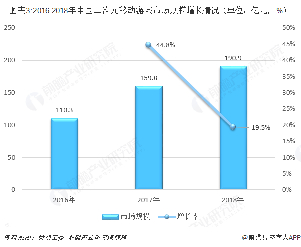 2018年我国二次元移动游戏市场规模为190.9亿元,较上年同比增长19.5%。国内游戏研发企业盛大游戏早在端游戏时代就凭借多款产品聚拢用户,形成独特的二次元游戏用户社群。现阶段,盛大游戏发力二次元的策略越来越清晰,运用契合年轻人的价值观和审美观,丰富IP内容,为后续衍生产品奠定基础。其符合二次元用户偏好的游戏产品《最终幻想14》、《命运歌姬》《神无月》等均取得了一定的市场成绩。