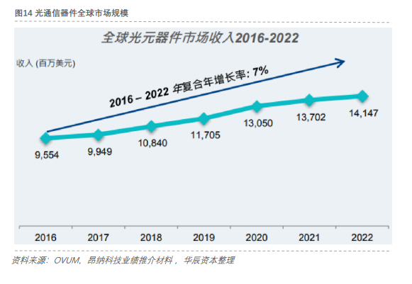 竞争格局。光器件分为有源器件(光检测器、光纤放大器、光收发组件、光模块等)和无源光器件(光隔离器、光分路器、光开关、光连接器等),分类相对繁杂。在国际竞争格局中,目前我国光器件厂商无源光器件实力较强,有源光器件在全球比例略微薄弱。光通信器件领域还处在充分竞争时代。光通信器件分类繁杂,企业都是在某一细分领域精耕细作,导致了我国厂商众多,但集中度低,市场份额较分散。目前我国光器件厂商市场额占据全球市场15%左右,目前全球光模块市场已经开始进入整合期。