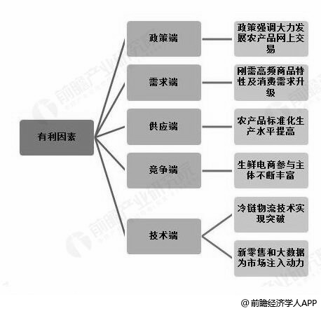 国家政策的支持,冷链物流、信息技术的发展、大品牌巨资的介入、新零售的布局及大数据的发展,都为生鲜电商注入了新的动力,生鲜电商发展已进入快车道。另外,网购生鲜的消费习惯逐渐形成,刚需高频商品特性及消费需求升级影响,直接拉动生鲜电商行业发展。