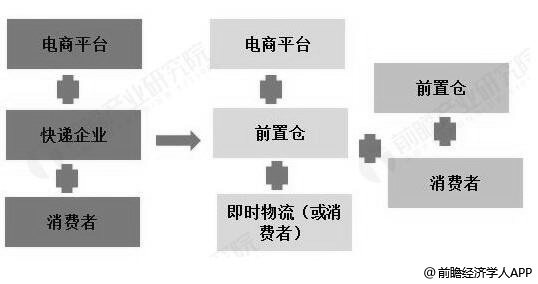 所谓前置仓,是指在企业内部仓储物流系统内,离门店最近,最前置的仓储物流。简单说就是社区3-5公里内的集仓储、分拣、配送于一体的便民服务站,可能是某个门店,可能是某个社区仓储点,在用户下单后尽快送货上门,缩短配送半径与时间,提升用户体验,改变社区用户消费习惯。前置仓的介入,让传统的物流配送格局从“电商平台+快递企业+消费者”进化为“电商平台+前置仓+即时物流(或消费者)”,或者“前置仓+消费者”,这种模式将三五公里生活圈内的即时消费需求充分挖掘出来,也改变了传统生鲜电商的消费模式。