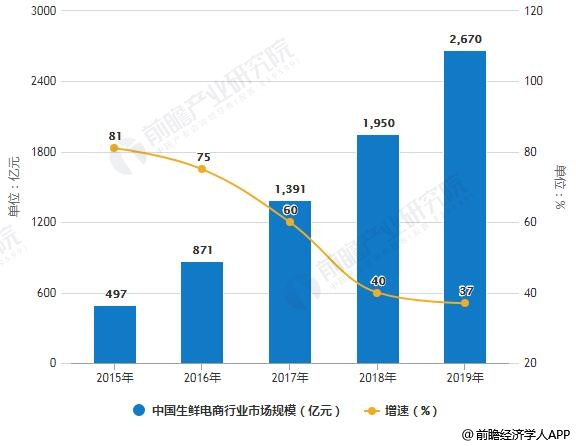 2015-2019年中国生鲜电商行业市场规模统计及增长情况预测