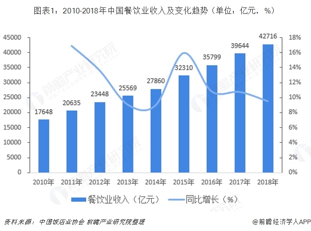 全国餐饮业持续增长,2018年收入超4.2万亿